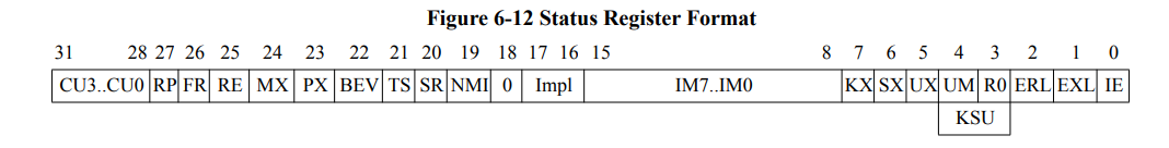 mtc0 a2, CP0_STATUS # 这一段从进程存储的CP0状态寄存器的1-7位恢复进cp0 12号状态寄存器。这几位的功能在下表中。